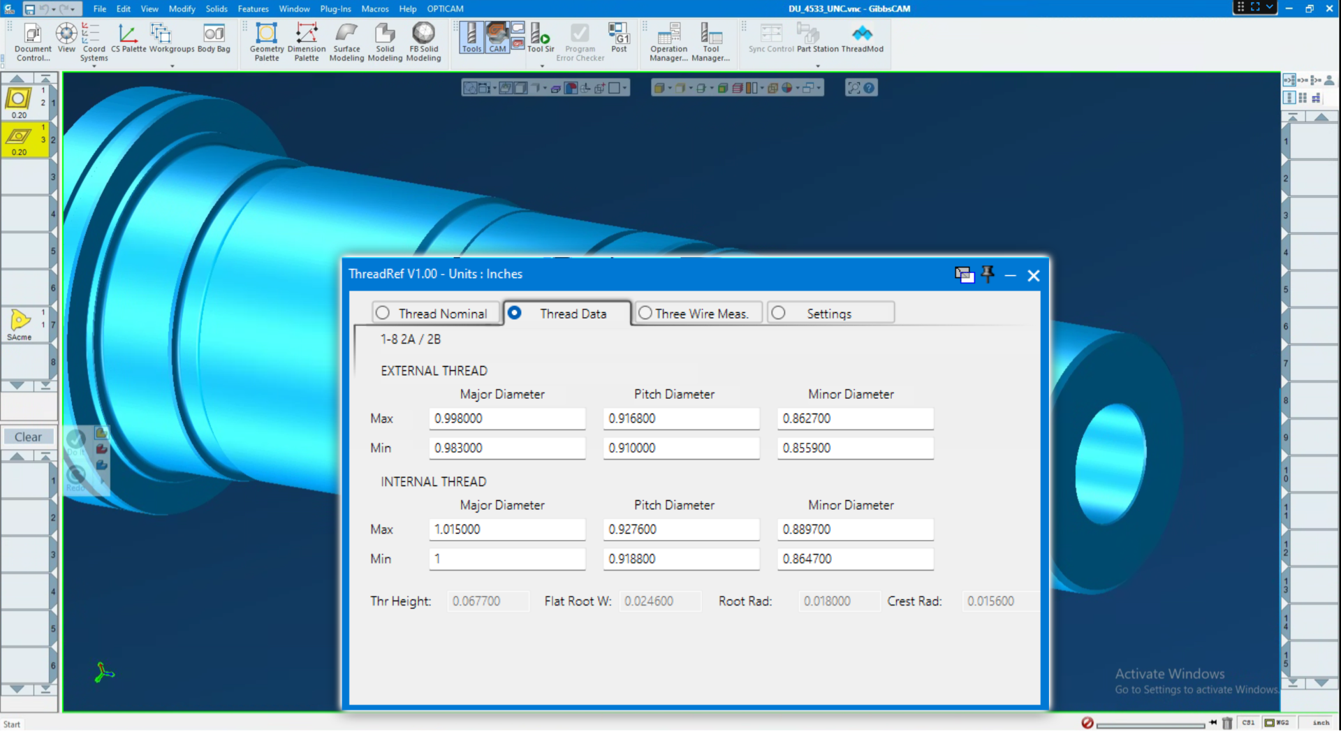ThreadRef - Thread data and reference plugin for GibbsCAM