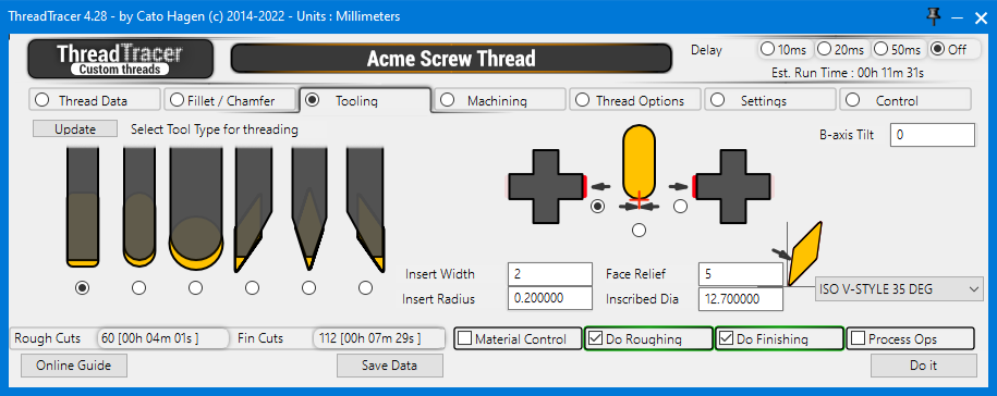 ThreadTracer will always build a new formtool with the shape defined by insert width and insert radius.