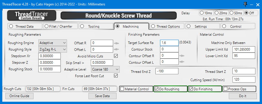 KNUCLE KNUCLE KNUCLE KNUCLE KNUCLE KNUCLE KNUCLE roughing_engine roughing_style steps offsets avoid micro adaptive force last finish contour stock contour offset material control thread positions cutting speed delay est_runtime rough_cut fin_cut material do_rough do_rough process online_guide save_data do_it