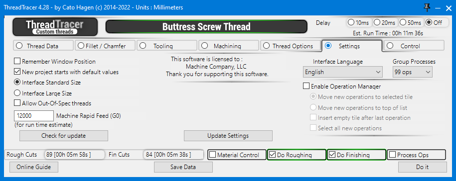 Group Processes : Set how many threading processes / operations to group together. If Nested Toolpath is on, this function is not active.